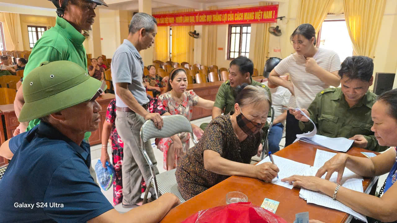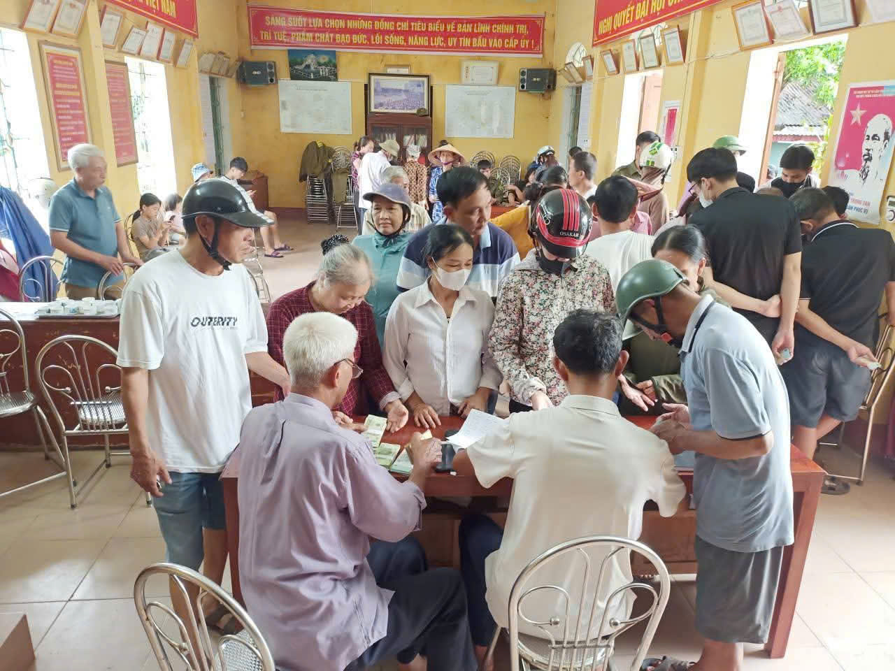 Để triển khai kịp thời việc phát quà cho Nhân dân, xã đã tổ chức 20 điểm tại 20 tôn trên địa bàn, hướng dẫn và trao tận tay 100.000 đồng/người đến Nhân dân. Theo số liệu tổng hợp, toàn xã có 11.471 hộ với 39.116 nhân khẩu. Trong đó có 596 hộ đăng kí nhận tiền qua tài khoản ngân hàng.