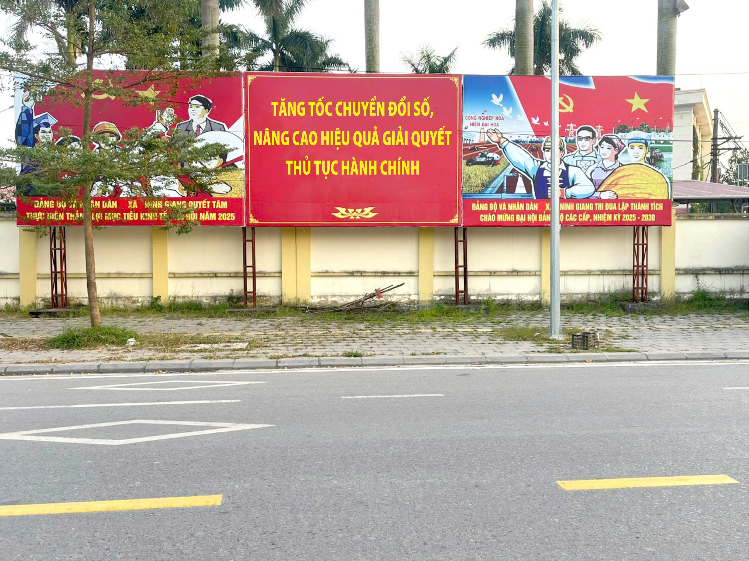 Công tác tuyên truyền trực quan được triển khai như treo pano, băng rôn, khẩu hiệu tại trụ sở cơ quan, các tuyến đường chính, khu vực công cộng, thôn, khu dân cư tập trung truyền tải thông điệp: “KHCN, ĐMST, CĐS: Động lực phát triển xã Ninh Giang”, “Toàn dân hưởng ứng Ngày CĐS Quốc gia 10/10”, “Xã Ninh Giang thúc đẩy chính quyền số - kinh tế số - xã hội số”.
