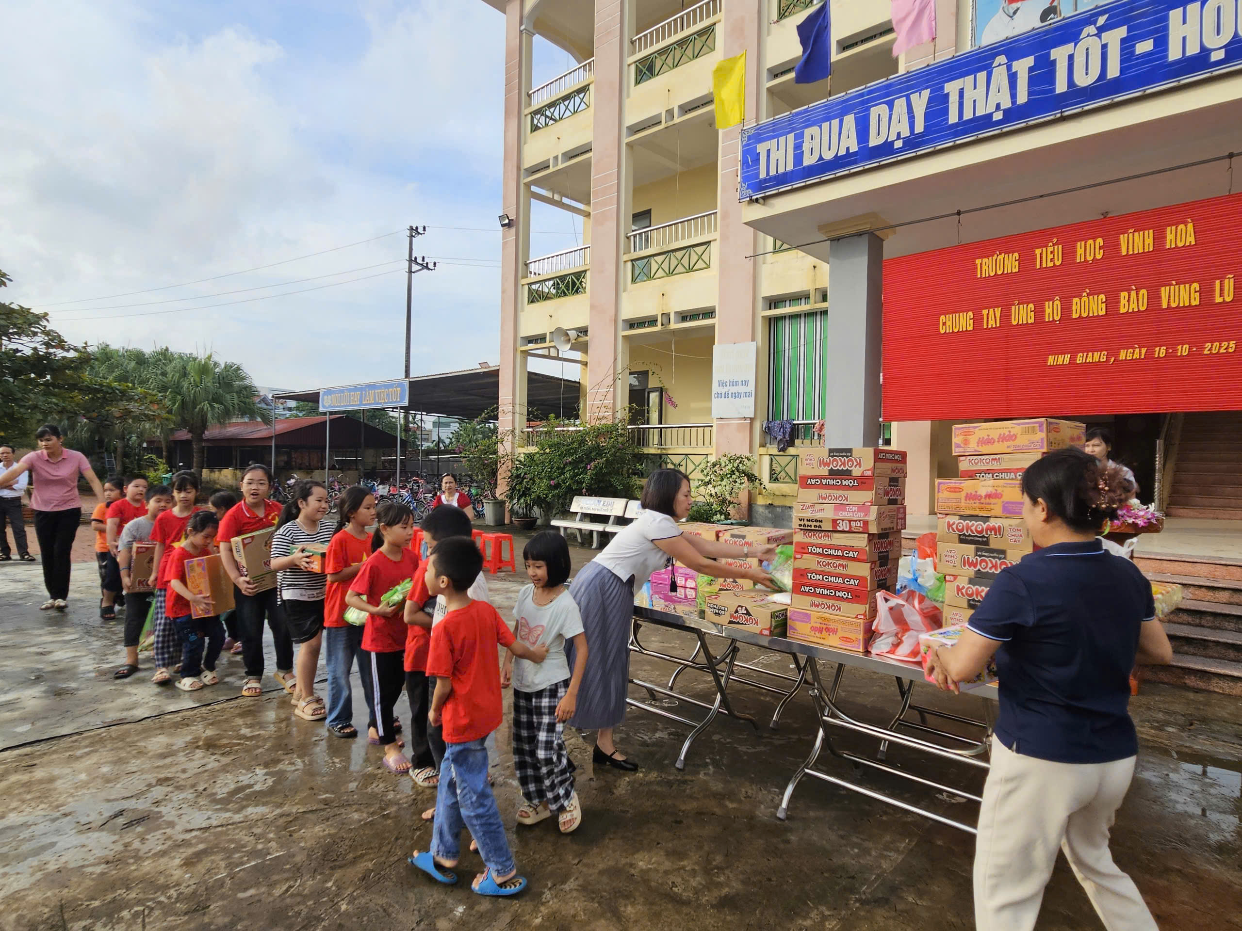 Thực hiện Công văn số 403 ngày 25/9/2025 của UBND xã Ninh Giang về việc triển khai hướng dẫn công tác thanh thiếu niên chữ thập đỏ trường học năm học 2025 – 2026. Hội chữ thập đỏ trường Tiểu học Vĩnh Hòa kết hợp với Liên đội trường tổ chức hoạt động tình nguyện nhân đạo chung tay ủng hộ đồng bào vùng lũ ( Xã Mỹ Thái – Bắc Giang và xóm Đồng Áng – Bảo Lý – Thái Nguyên) do đoàn thiện nguyện của chùa Phúc Linh kết hợp với trường Tiểu học Quyết Thắng. Với tinh thần “lá lành đùm lá rách” và mong muốn góp phần san sẻ khó khăn, Ban Giám hiệu nhà trường cùng toàn thể giáo viên, nhân viên và học sinh đã phát động chương trình “Chung tay ủng hộ đồng bào vùng lũ”.